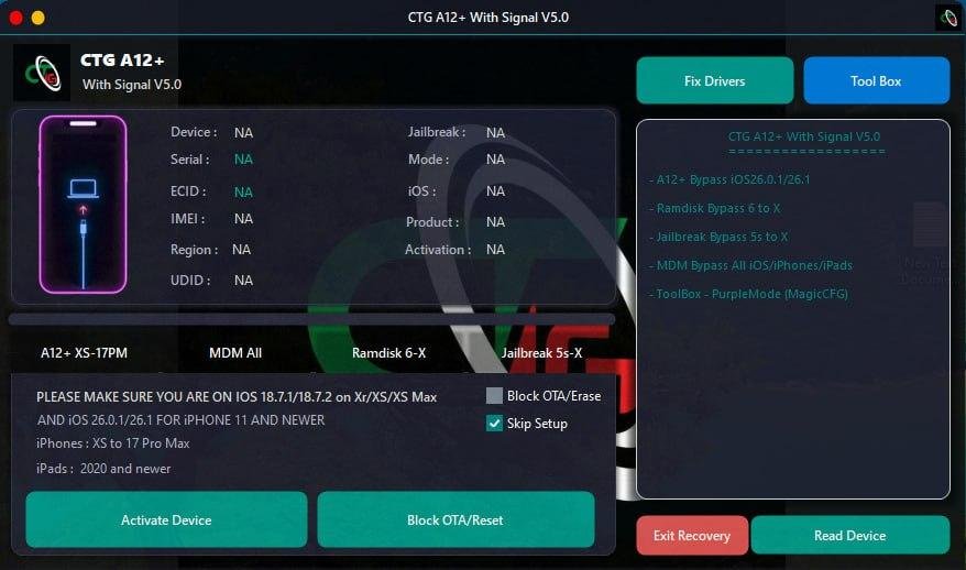 CTG A12+ With Signal v5.0 iPhone XS,XR,XS-Max iOS 18.7.2 Supported